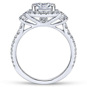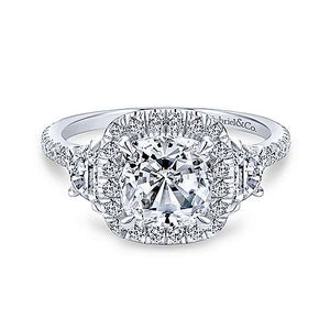 Gabriel & Co 14K White Gold Cushion Three Stone Halo Diamond Engagement Ring ER9189W44JJ