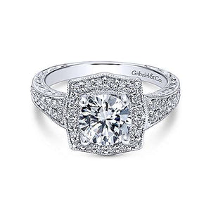 Gabriel & Co Vintage 14K White Gold Round Diamond Halo Engagement Ring ER10191W44JJ