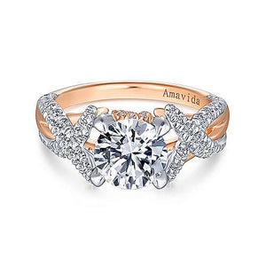Gabriel & Co 18k White Rose Gold Round Twisted Diamond Engagement Ring ER14006R6T83JJ