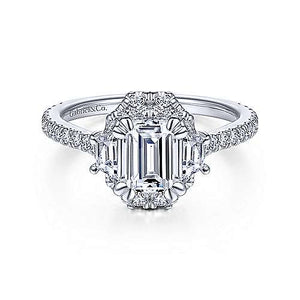 Gabriel & Co 14K White Gold Emerald Cut Diamond Halo Engagement Ring ER14740E4W44JJ