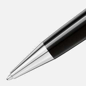 The Meisterstück Midsize in deep black precious resin with elegant platinum-coated details, surmounted by the white Montblanc emblem, evolves into a distinctive design icon. Its size is between LeGrand and Classique Ballpoint Pens.