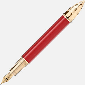 Moctezuma I was crowned ruler of the great Aztec Empire in 1440, thereby ushering in the golden age of the Aztecs. During his reign, he shaped the image of the Aztec state that we are familiar with today – one rich in culture and mythology. The capital city of Tenochtitlán, today’s Mexico City, blossomed under his rule. The Montblanc Patron of Art Homage to Moctezuma I Limited Edition 4810 with champagne-tone gold-coated fittings is dedicated to this supreme ruler of one of the most special cultures in world history. The overall design is inspired by an "atlatl", an Aztec spear-throwing device. The shape of the cone, refined with a hammer finish, is based on an Aztec sacrificial knife with an obsidian blade. The lacquer colors – petrol and carmine red – are inspired by the colors of the royal cloak. Two hieroglyphs decorating the cap symbolize the years of Moctezuma I's reign. The handcrafted Au 750 solid gold nib is adorned with a fine engraving inspired by the Aztec glyph for the city of Tenochtitlán: a three-armed cactus with a royal diadem and two scrolls.