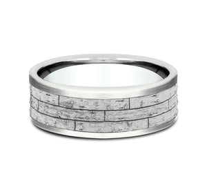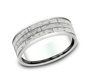 This beautiful 7mm comfort-fit ring has a beautiful wood plank design that is highly detailed and makes for a unique style.