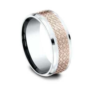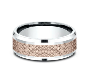 Channeling the motifs of the Ottoman Empire, intricate design work gives this 8mm comfort-fit two-tone ring a uniquely elegant look.