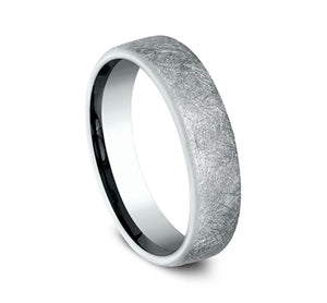The unique swirl finish on this comfort-fit 5.5mm band creates an interesting textured effect.