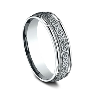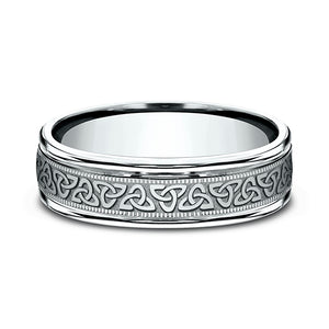 Representing the timeless nature of love, this 6mm Rose Gold band features an endless Celtic Knot pattern cradled by high polish round edges.
