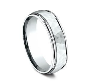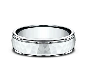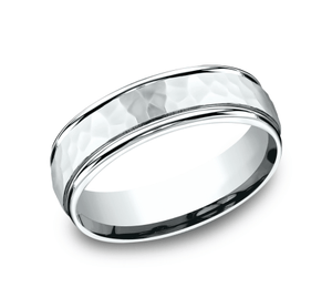This unique high polish hammered finish creates a dimensional mirrored effect framed by rounded edges on this 6.5mm comfort-fit design ring.