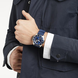 Dark Blue NBR 70 signature extender rubber strap with brushed stainless steel signature buckle, 24mm