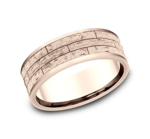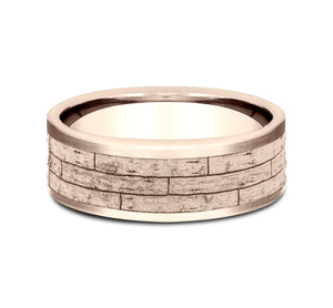 This beautiful 7mm comfort-fit ring has a beautiful wood plank design that is highly detailed and makes for a unique style.