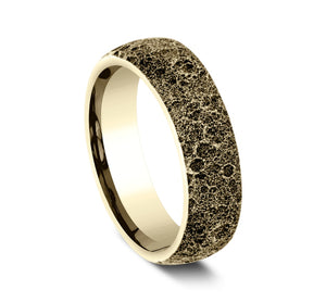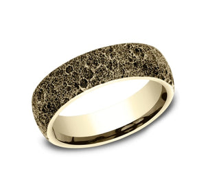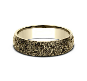 The wear resistant black detailing on this 6mm gold ring creates a beautiful out of this world moon rock design.