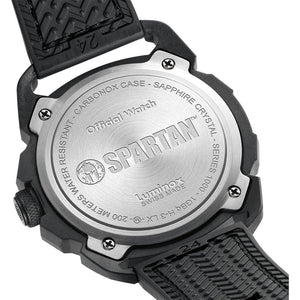 46 mm CARBONOX™ case with crown protection and 316L stainless steel case back CARBONOX™, fixed bezel, at 12h fitted with a protected orange light tube as well as hour and Minutes hands.