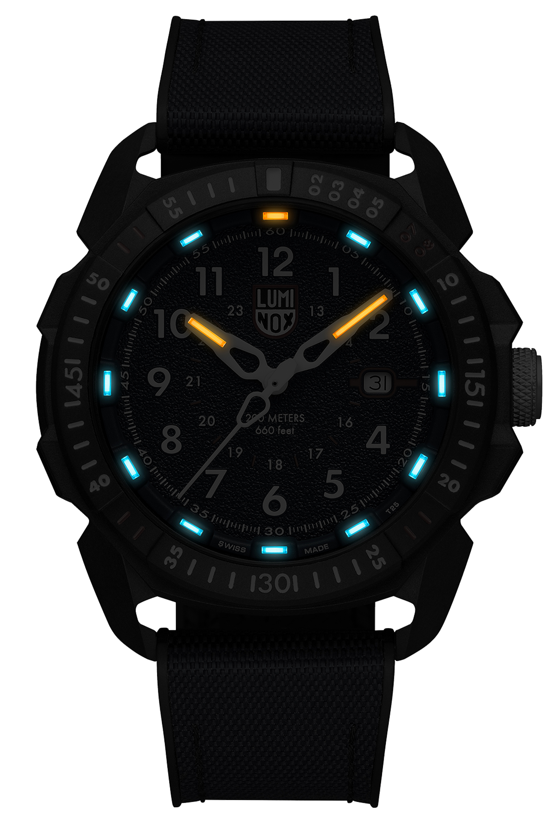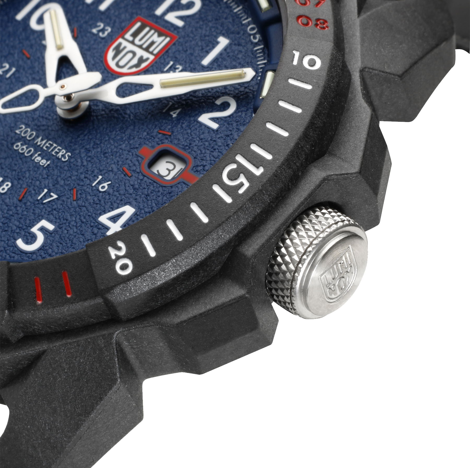 46 mm CARBONOX™ case with crown protection and 316L stainless steel case back CARBONOX™, ufixed bezel