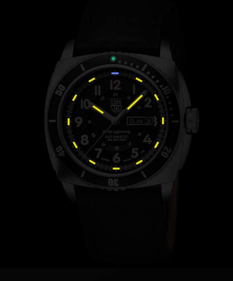 Luminox 9401 Mens P-38 Lightning Automatic Black Leather Watch